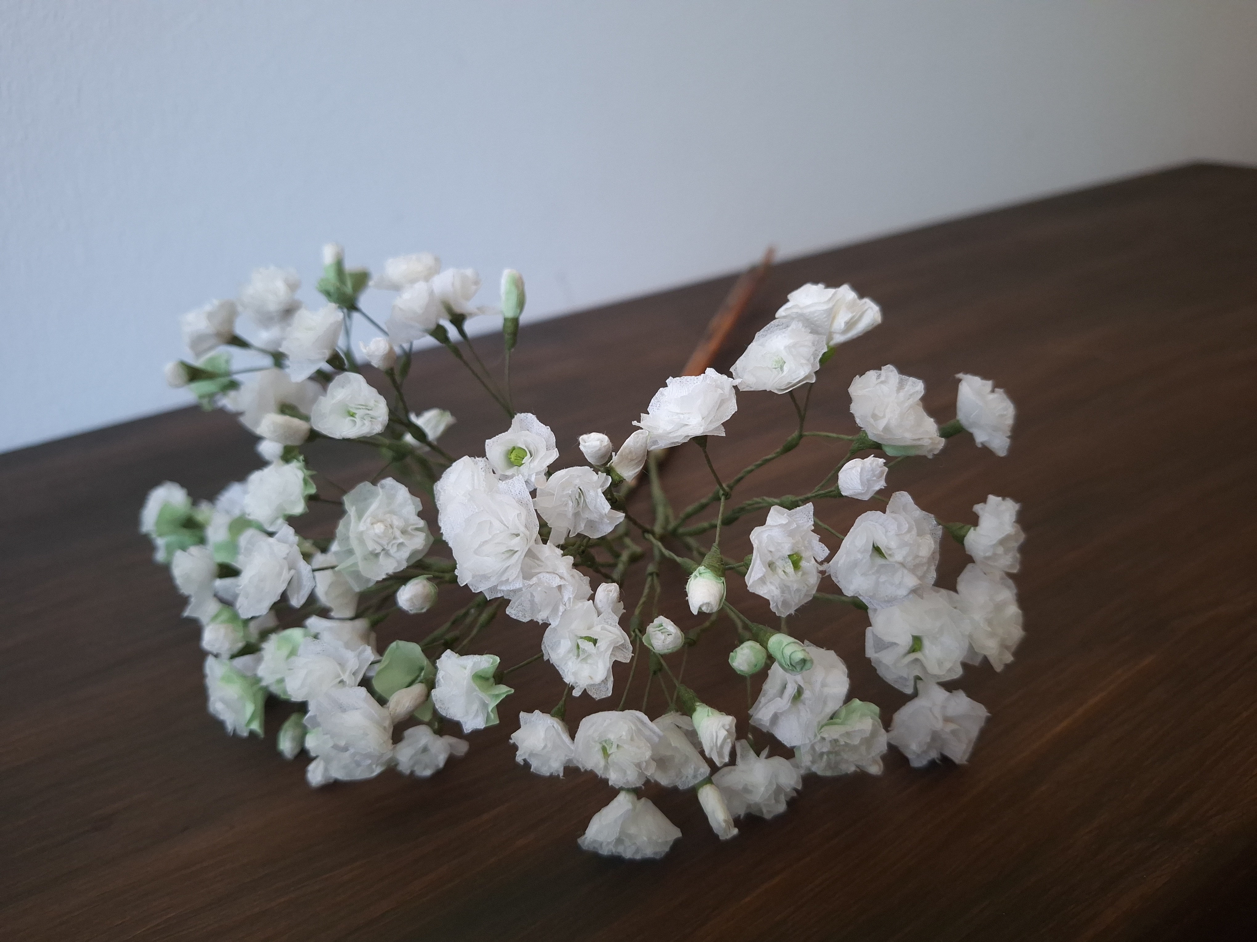 2. Minden csokorhoz készítek a csokrot alkotó virágokból egy-egy szálat mintának, ha szükséges, több színben is, és erről fotót küldök. Ha olyan virágról van szó, amit még nem készítettem, ez hosszabb időt vehet igénybe. Ezek alapján véglegesítjük a színeket és a virágok számát, az egyéb elemeket (pl: szárak, szalagok). Fontos információ, hogy kültéren is lesz-e a csokor, vagy csak beltéren.