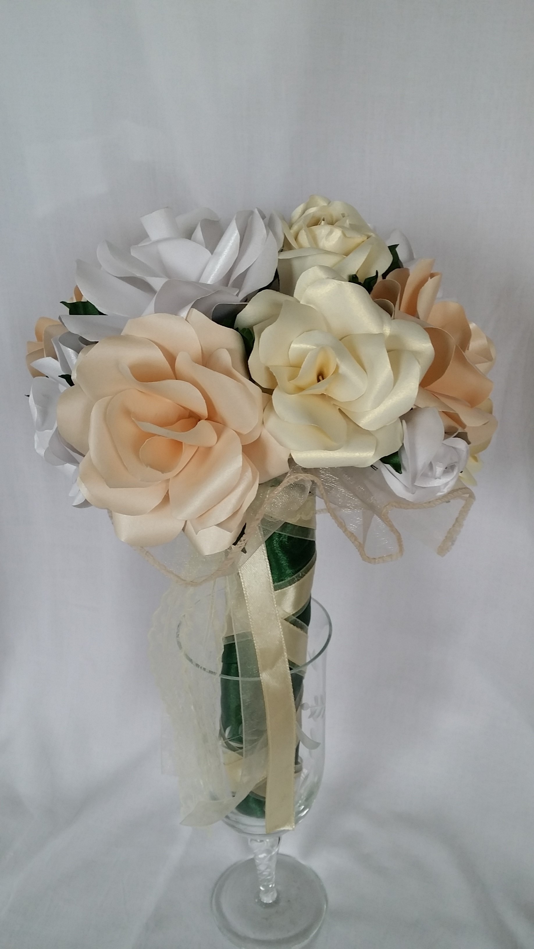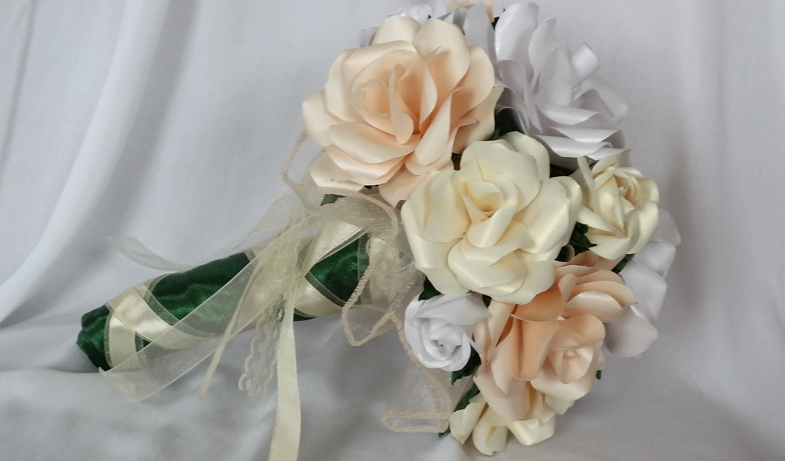 2. Minden csokorhoz készítek a csokrot alkotó virágokból egy-egy szálat mintának, ha szükséges, több színben is, és erről fotót küldök. Ha olyan virágról van szó, amit még nem készítettem, ez hosszabb időt vehet igénybe. Ezek alapján véglegesítjük a színeket és a virágok számát, az egyéb elemeket (pl: szárak, szalagok). Fontos információ, hogy kültéren is lesz-e a csokor, vagy csak beltéren.